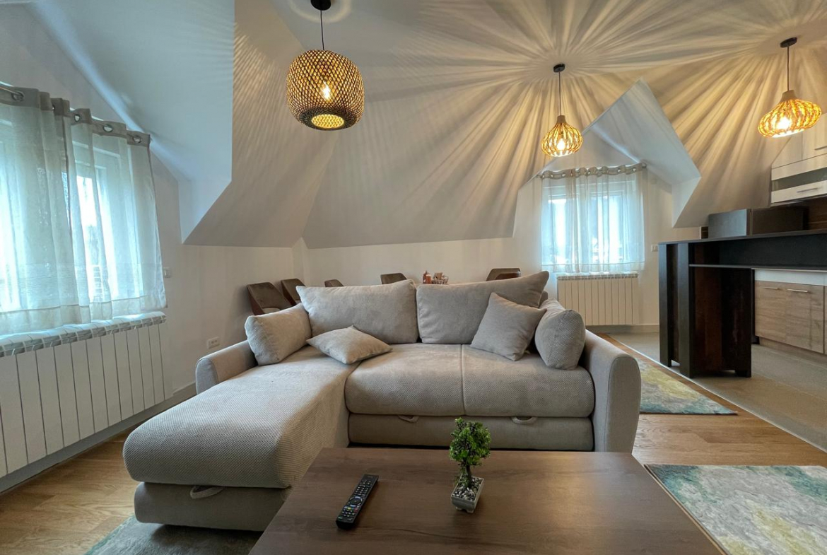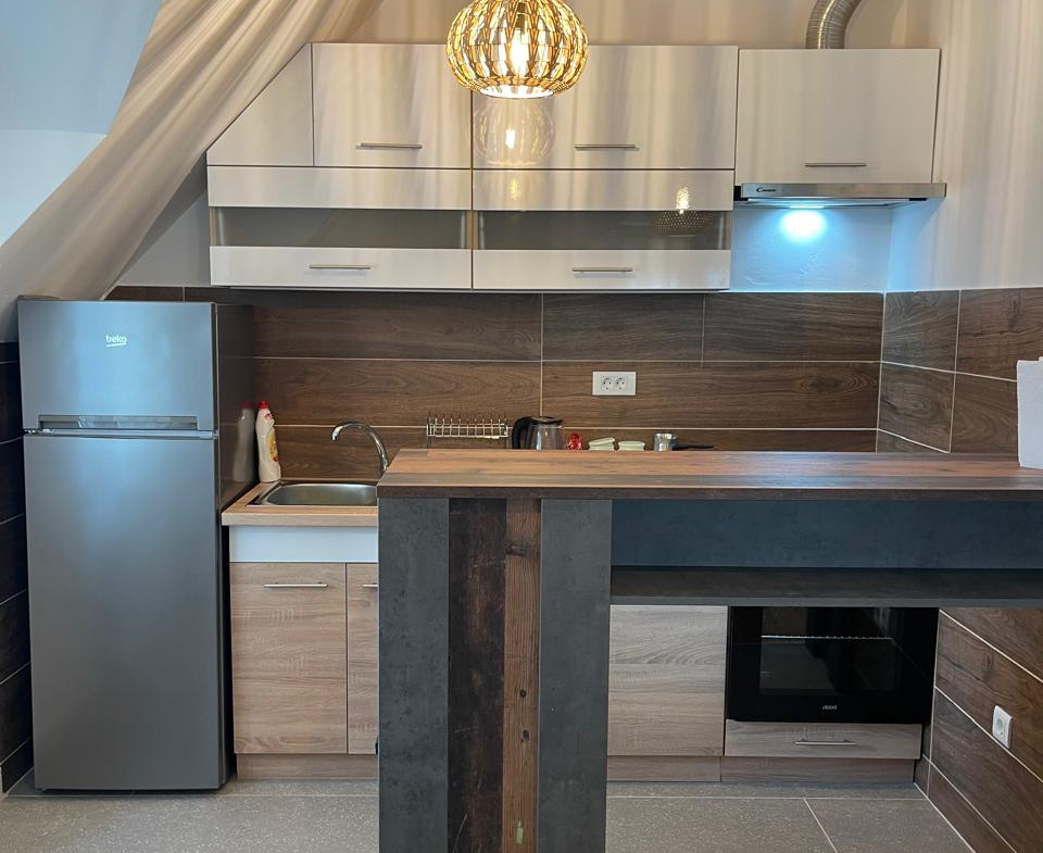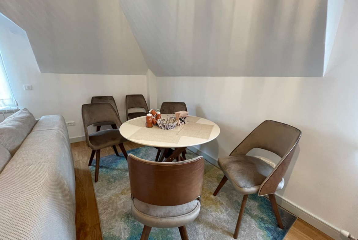 The apartment is fully furnished and ready to move in. New high-quality furniture and a fully equipped kitchen. The apartment has individual electric heating by Valliant. The building has a spa area with a sauna and a jacuzzi
