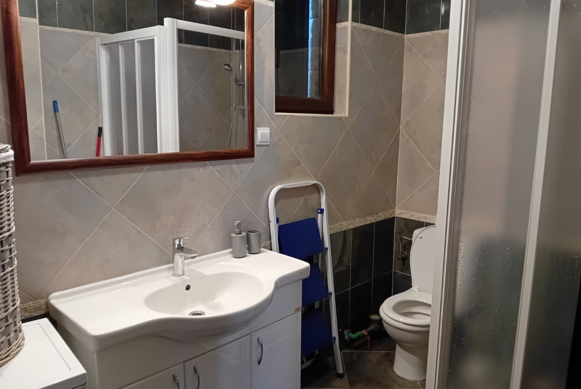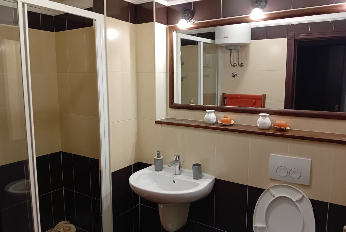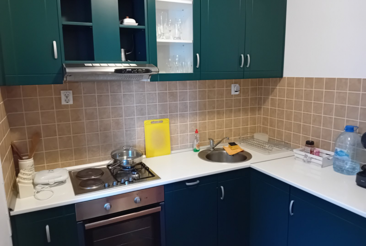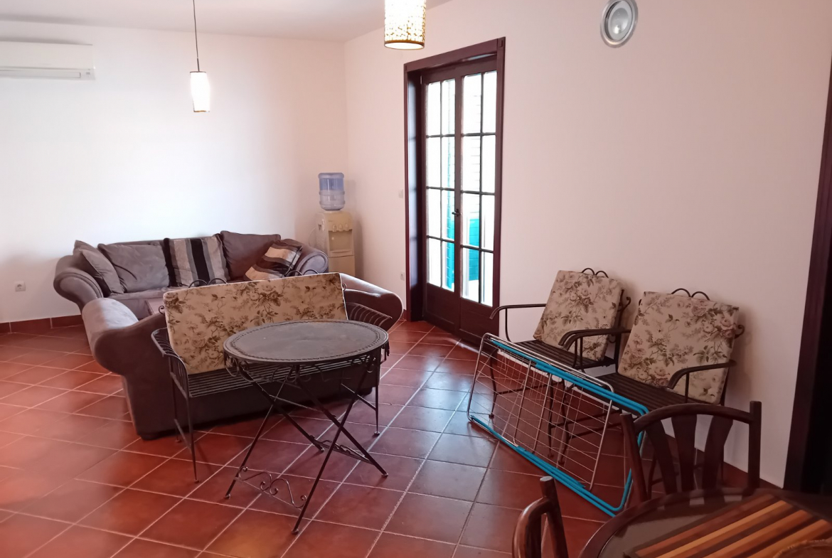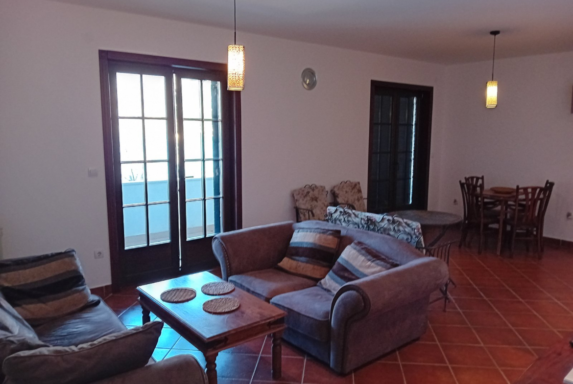 The apartment is fully furnished, equipped with a kitchen, and has a direct view of the sea and mountains